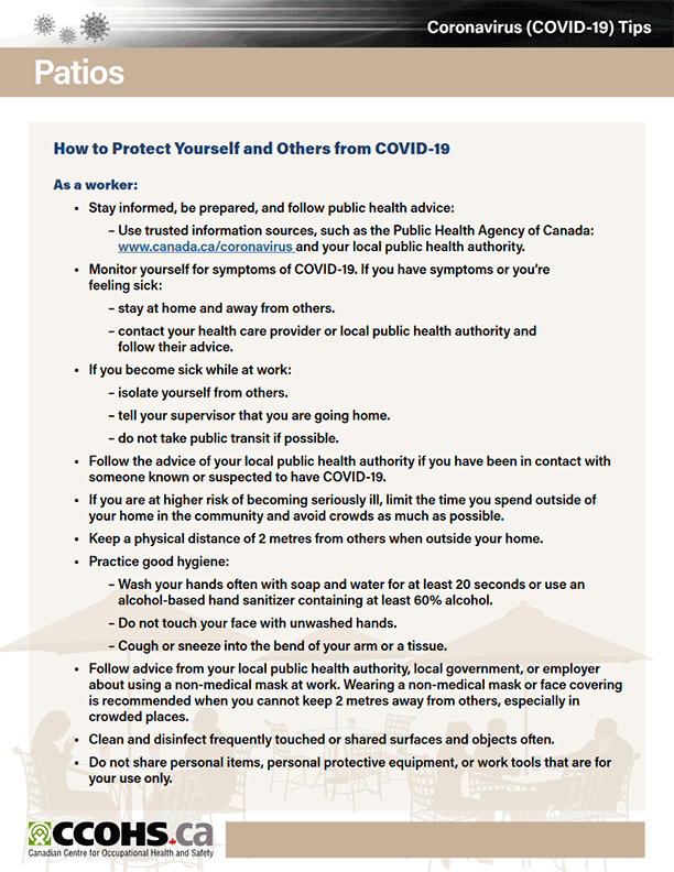 Tips on how to protect yourself and others from COVID-19 when working on patios.