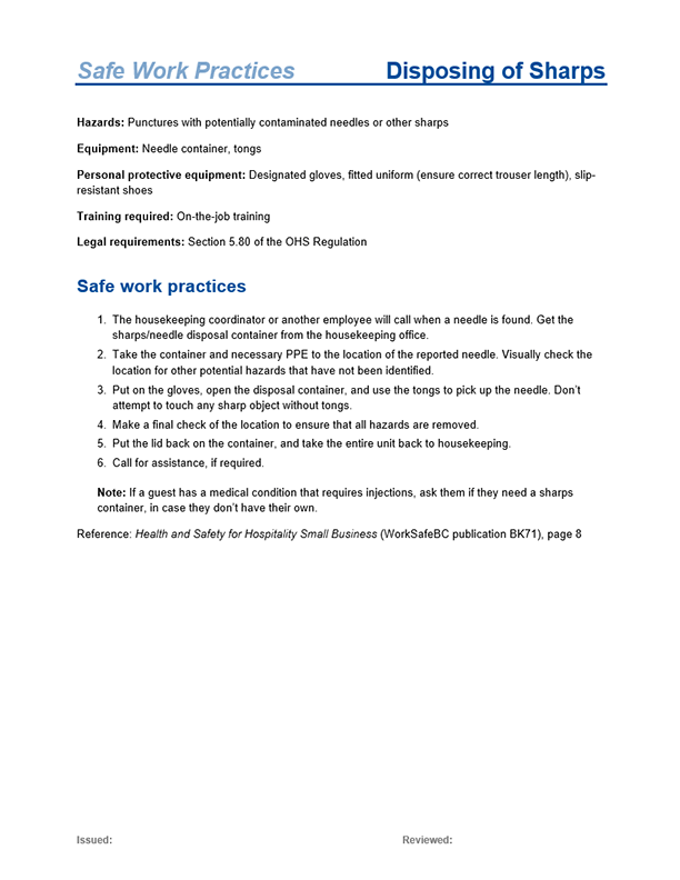 The go2HR® website contains material that will assist with the development of your program, including templates, tools, sample policies, etc. To speak to a COR specialist, email safety@go2hr.ca.