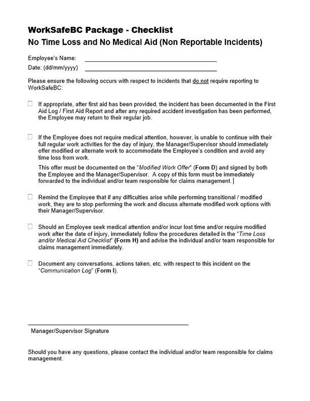 - Reporting to WorkSafeBC injuries that needed medical attention.
