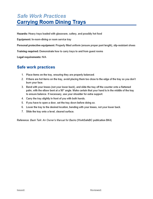 Be sure to document all training. An orientation checklist will help ensure that you have covered all the key topics when training a new worker. Give copies of the checklist and other relevant materials to the worker and keep copies for your own records.