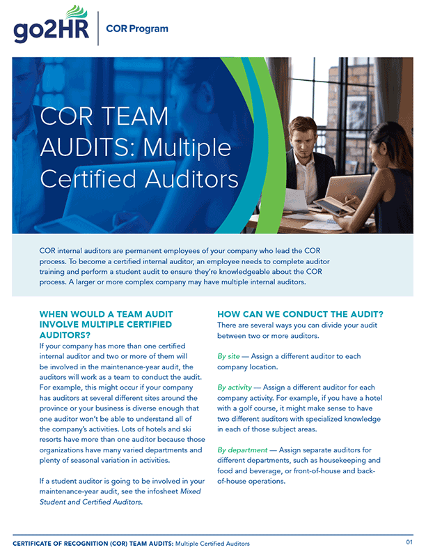 This infosheet covers COR audits that are conducted by a team of certified internal auditors.