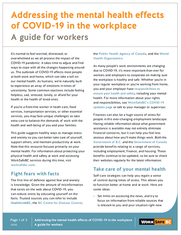 Addressing the Mental Health Effects of COVID-19 in the Workplace: A Guide for Workers