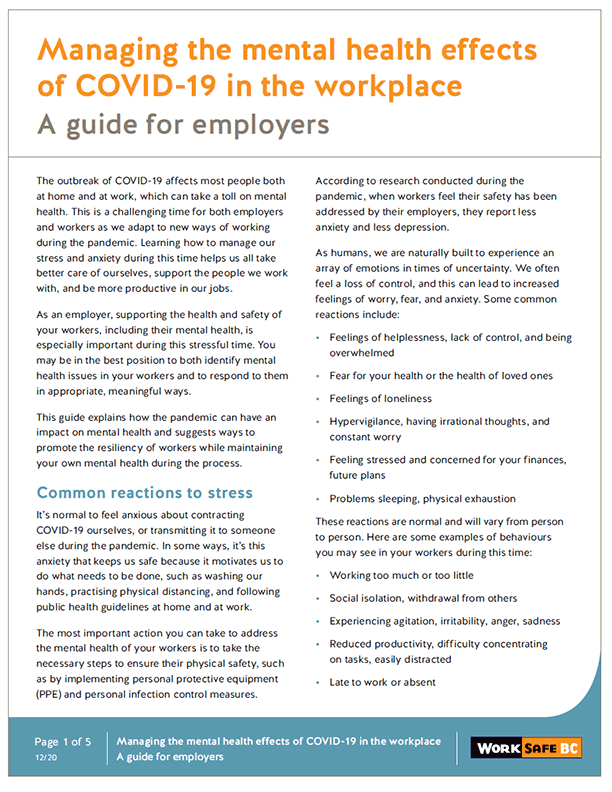 Managing the Mental Health Effects of COVID-19 in the Workplace: A Guide for Employers