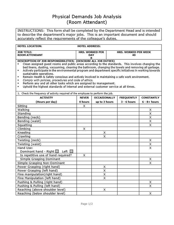 Physical Demands Job Analysis (Room Attendant)