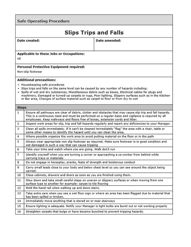 Safe Operating Procedure: Slips, Trips, and Falls